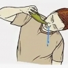 고개를 숙여 한쪽 콧구멍으로 천천히 흘려 보내기